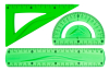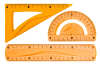 Komplet wykonany z elastycznego tworzywa. Komplet zawiera: ekierkę, linijkę, kątomierz. Opakowanie: blister / pudełko 24 komplety.